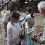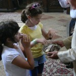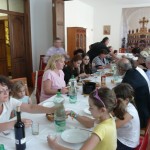 A szent liturgia után a vendéglátók ebédre hívták a zarándokokat a parochia ebédlőjébe. Hamar igen jó hangulatú, barátságos beszélgetés alakult ki a komáromi és a budapesti hívek között. A gyermekeknek játékra nyílt lehetőségük a tágas és szépen elrendezett templomudvaron, és értékes ajándékokat – könyveket, kis ikonokat, rajzeszközöket is kaptak Miroslav atyától.